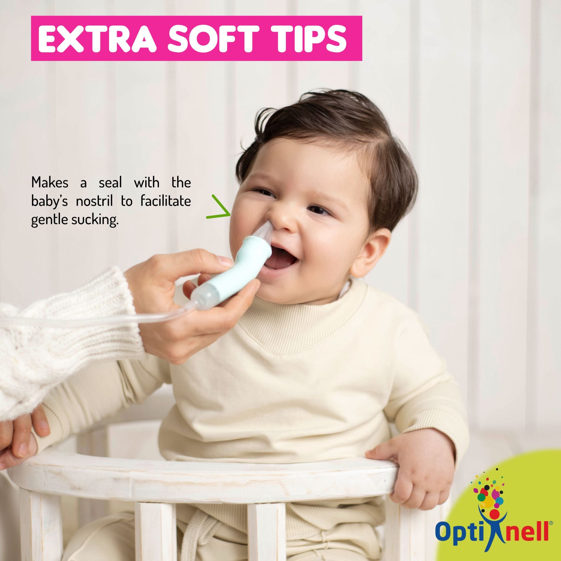 The soft silicone tips make a perfect seal with baby's nostril for gentle, effective suction. -